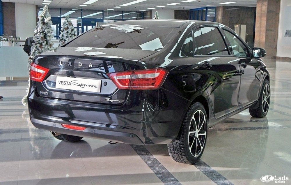 Модификация Весты с приставкой «Signature» имеет ряд отличий. Кузов удлинили на 25 см кузов, декоративные элементы интерьера имеют индивидуальное исполнение, а под капотом - двигатель увеличенной мощности. Салон получил кожаную отделку и индивидуальную цветовую гамму. Главное место в машине VIP класса - сзади.