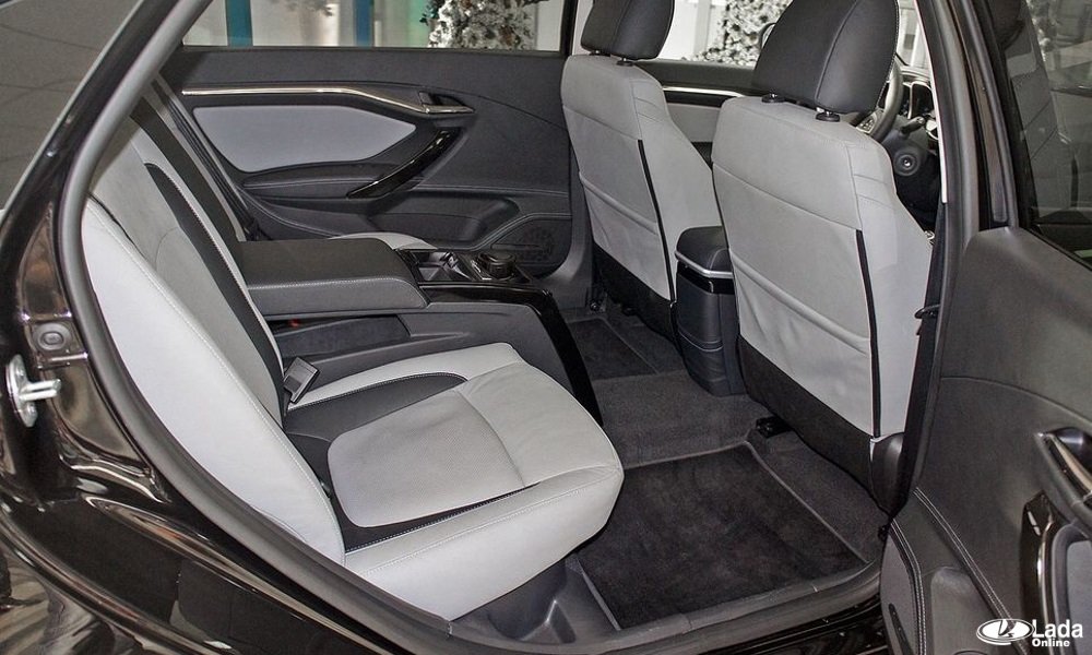 Верхняя часть дверных панелей оформлена пленкой с тиснением Fiber. Аудиосистема Harman/Kardon, возможно в будущем у удлиненной Весты, будет двухзонный климат-контроль.