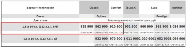 Двигатель 1,8 л (122 л.с.) в паре с механической трансмиссией по-прежнему будет доступен в комплектациях [BLACK], Luxe и Instinct.