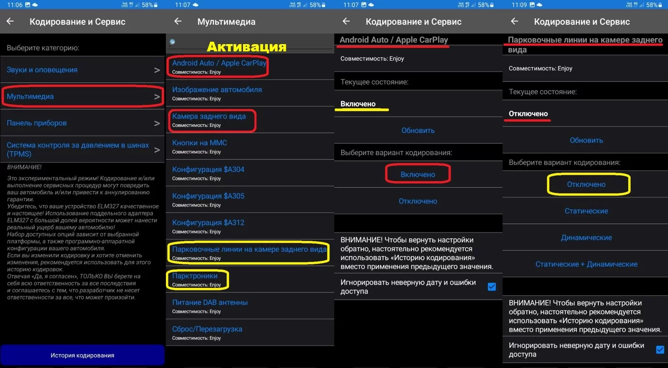 Так же в этой программе (Car Scanner ELM OBD2 Версии 1.108.0) для адаптера ELM 327 — есть ещё много функций которые надо подробно рассматривать и заниматься этим, на что у меня пока что нет времени (впереди поездки на моря), да и то, что я хотел иметь на своей машине — я активировал, дальше пока не суюсь🙄.