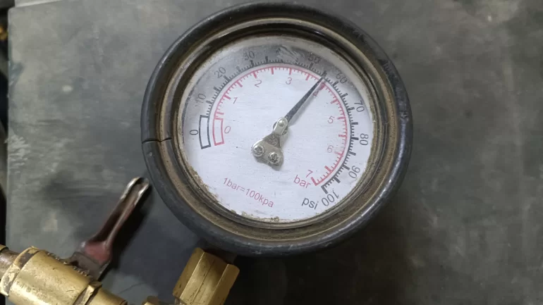 Топливо есть, искра есть, впрыск есть. Может быть нет компрессии? Замерим. Фотография с показаниями компрессометра почему-то не сохранилась, но значение в 10-11 атмосфер вместо 16-ти положенных, говорит нам о каких-то проблемах в "железе" двигателя. Например в уехавших фазах ГРМ. Проверим метки.