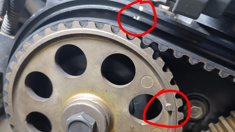 Из-за чего ремень не натянут. Выставим метки на распредвалах.