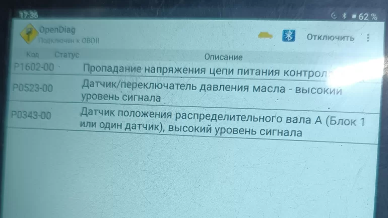 Ошибки в памяти ЭБУ на момент чтения никогда не стоит расценивать как текущие. Какие-то из них могли быть занесены в память блока давно и не имеют отношения к тому, что двигатель не запускается сейчас. Сбросим ошибки, повторим попытку запуска и посмотрим, какие из них являются актуальными.