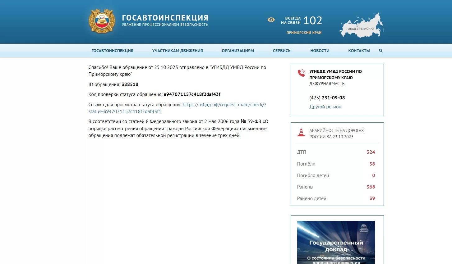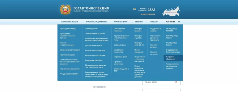 Заходим на сайт гибдд.рф, выбираем пункт "сервисы", далее выбираем пункт "направить обращение"