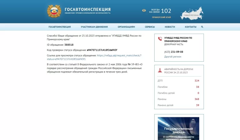 И так, у нас есть видео нарушения. Дальше все довольно просто, заходим на сайт гибдд.рф, создаем обращение, описываем ситуацию, прикладываем видео и отправляем. Есть несколько важных пунктов, которые стоит прописать, иначе вас могут вызвать для уточнения информации.