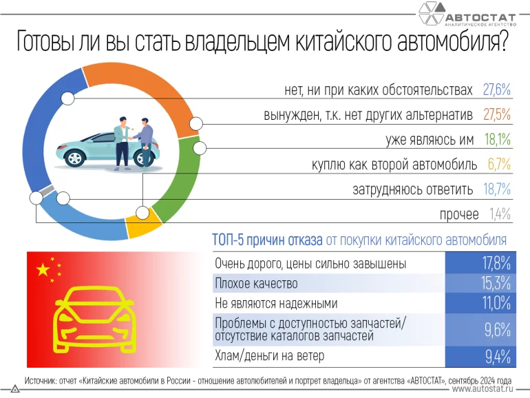 На вопрос "Готовы ли вы стать владельцем китайского автомобиля в 2024 году?" отвечали так: