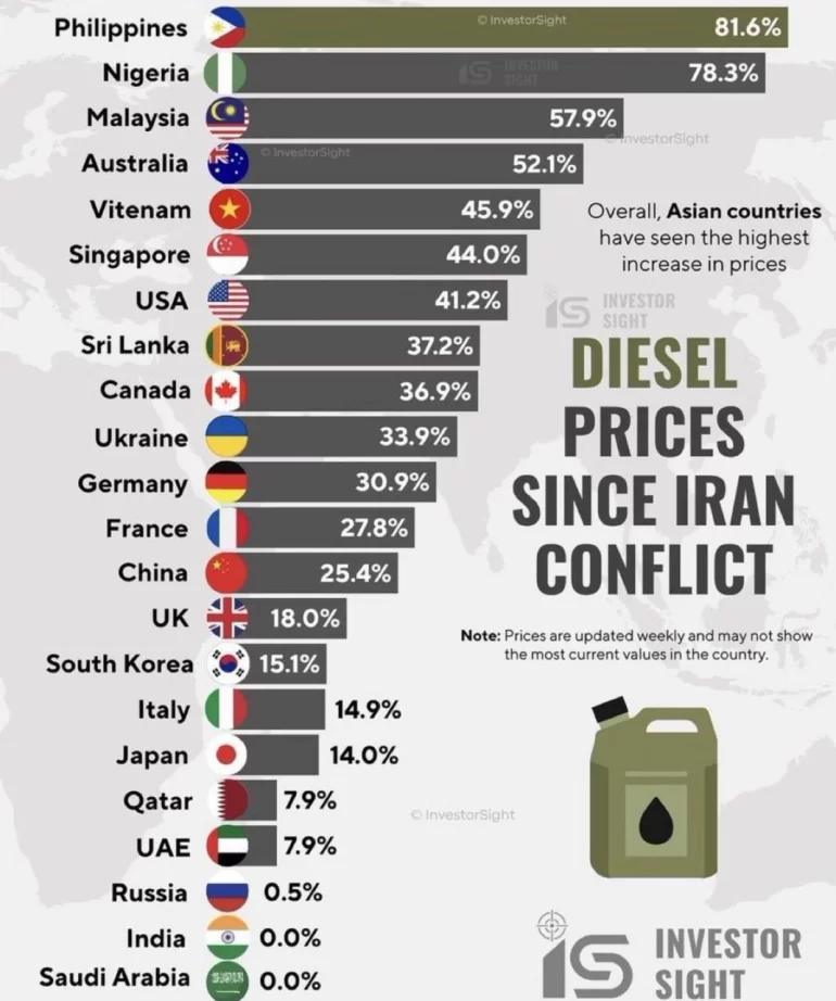 Ситуация на Ближнем Востоке в феврале–марте 2026 года характеризуется масштабным военным конфликтом, в который вовлечены Израиль, США и Иран. В результате был перекрыт Ормузский пролив. В связи с этим эксперты публикуют статистику, показывающую, в каких странах бензин и дизельное топливо подорожали больше всего.