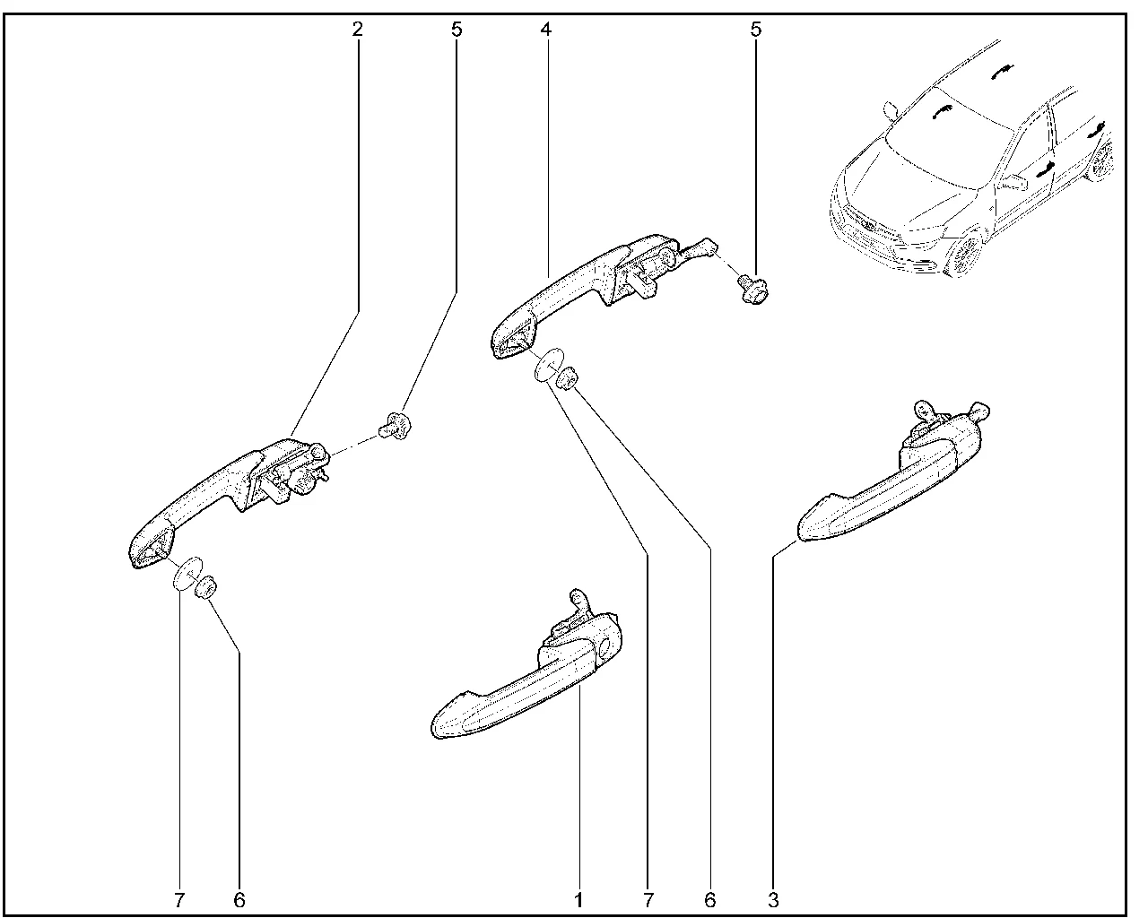 | 4 | Ручка наружная задней двери правая (под окраску) | 21920620515011 | 8450104597 |