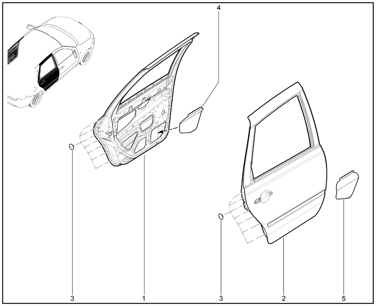 | 1 | Дверь задняя левая (без отверстий под молдинг) | 21910620001570 | 8450101584 |