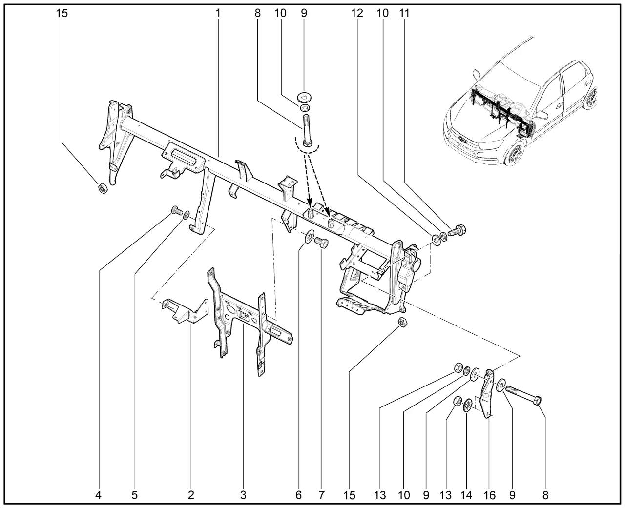 | 16 | Кронштейн поперечины панели приборов правый | 21920532509000 | 8450060991 |