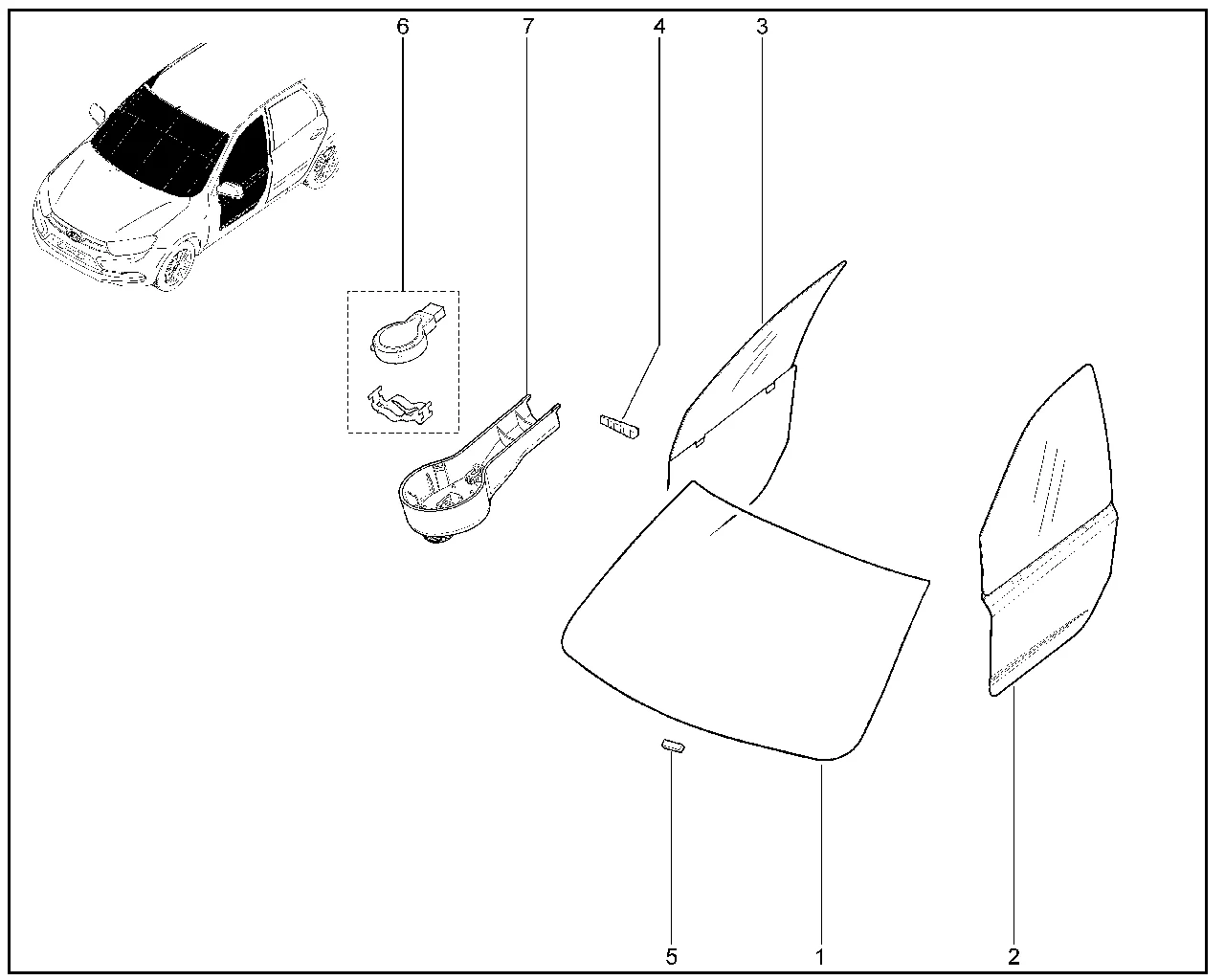 | 1 | Стекло ветрового окна с пластиной в сборе | 8450111947 | |