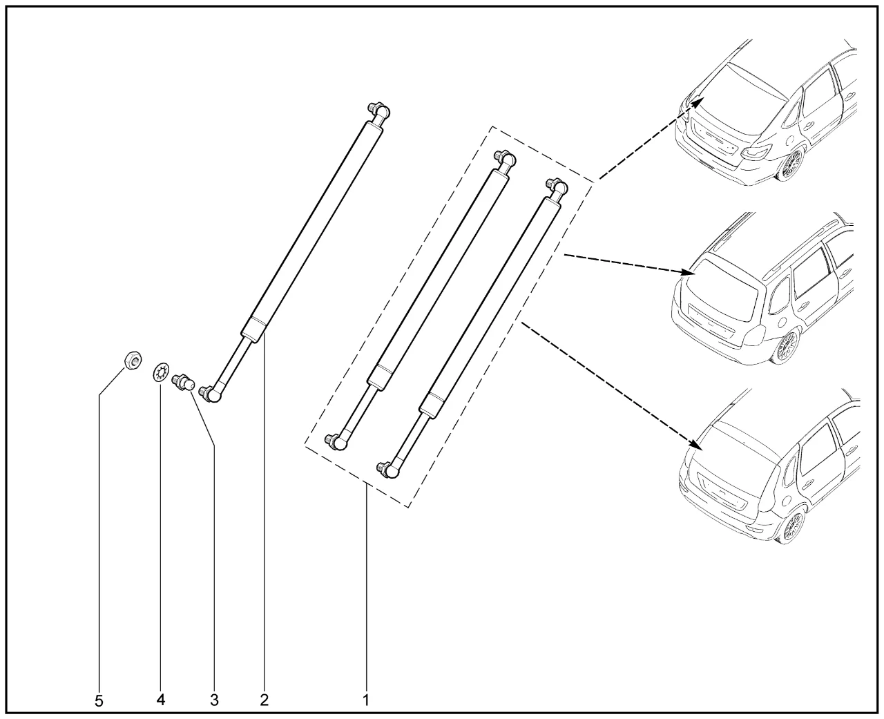 | 1 | Комплект упоров газовых двери задка (2 шт.) с пальцами шарниров в сборе (4 шт.) (для универсала) | 8460013445 | |
