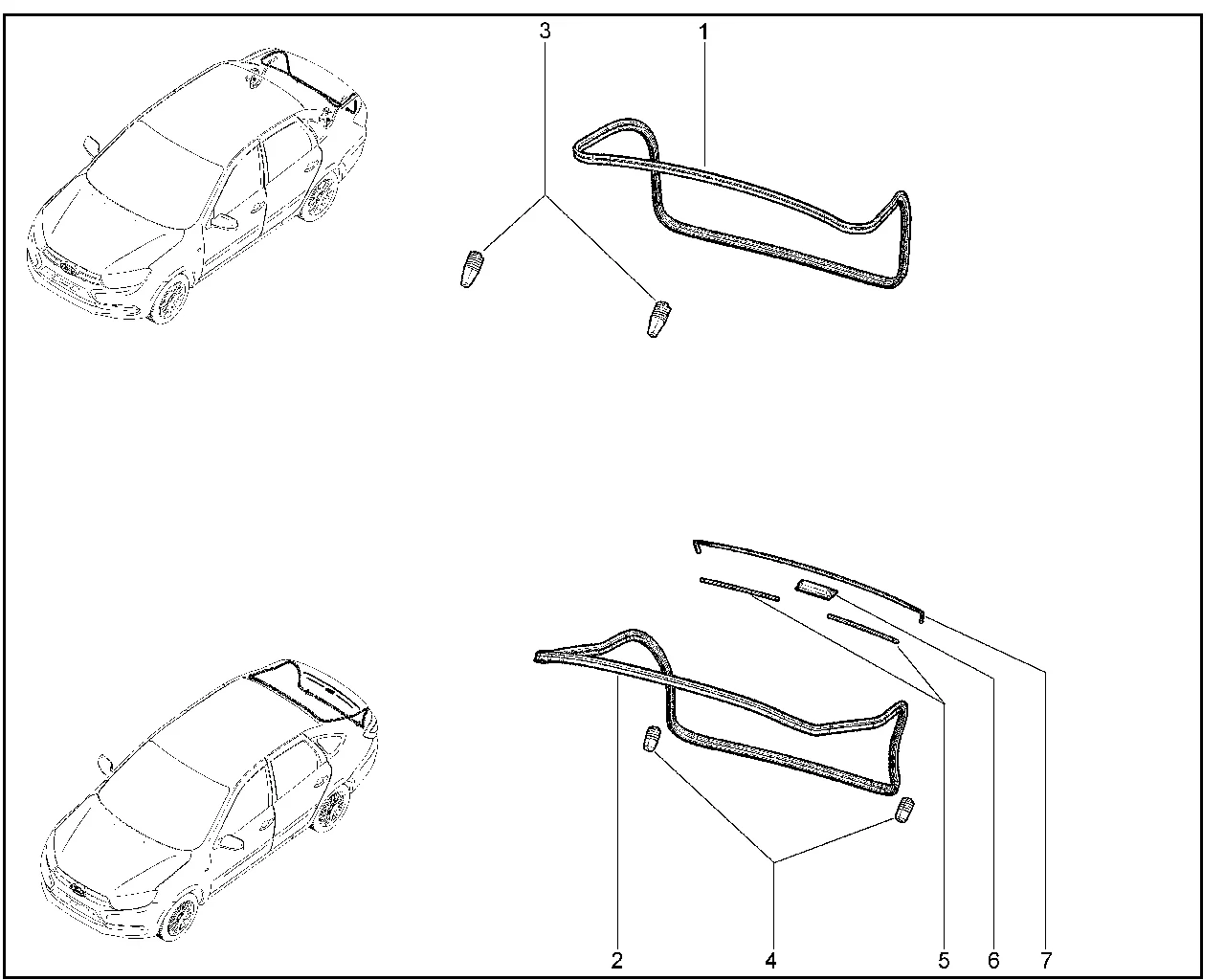 | 7 | Уплотнитель накладки двери задка верхний | 21910821252800 | 8450003343 |