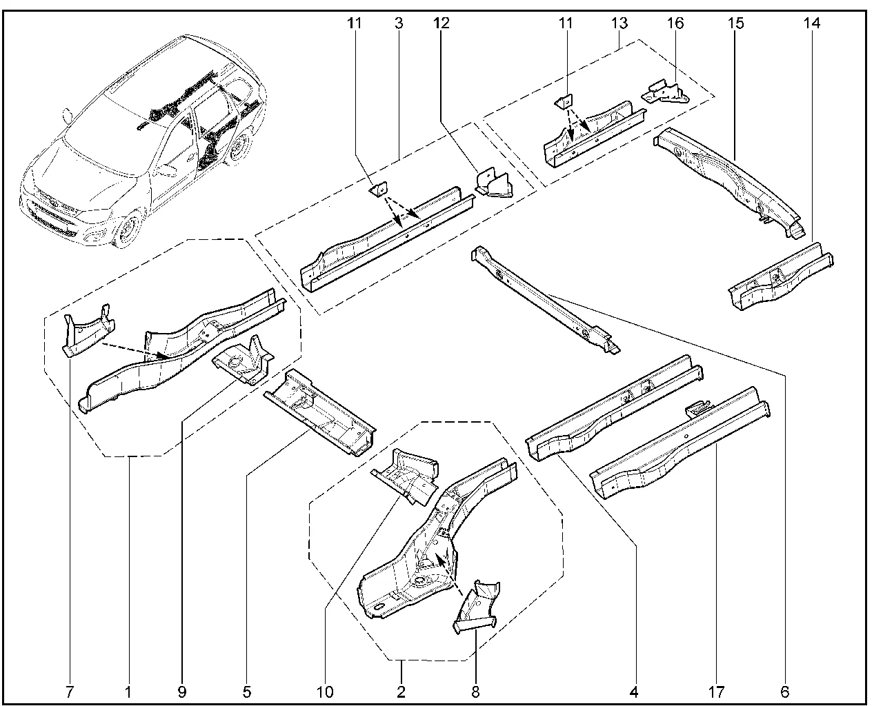 | 17 | Лонжерон пола задний левый в сборе | 8460006768 |