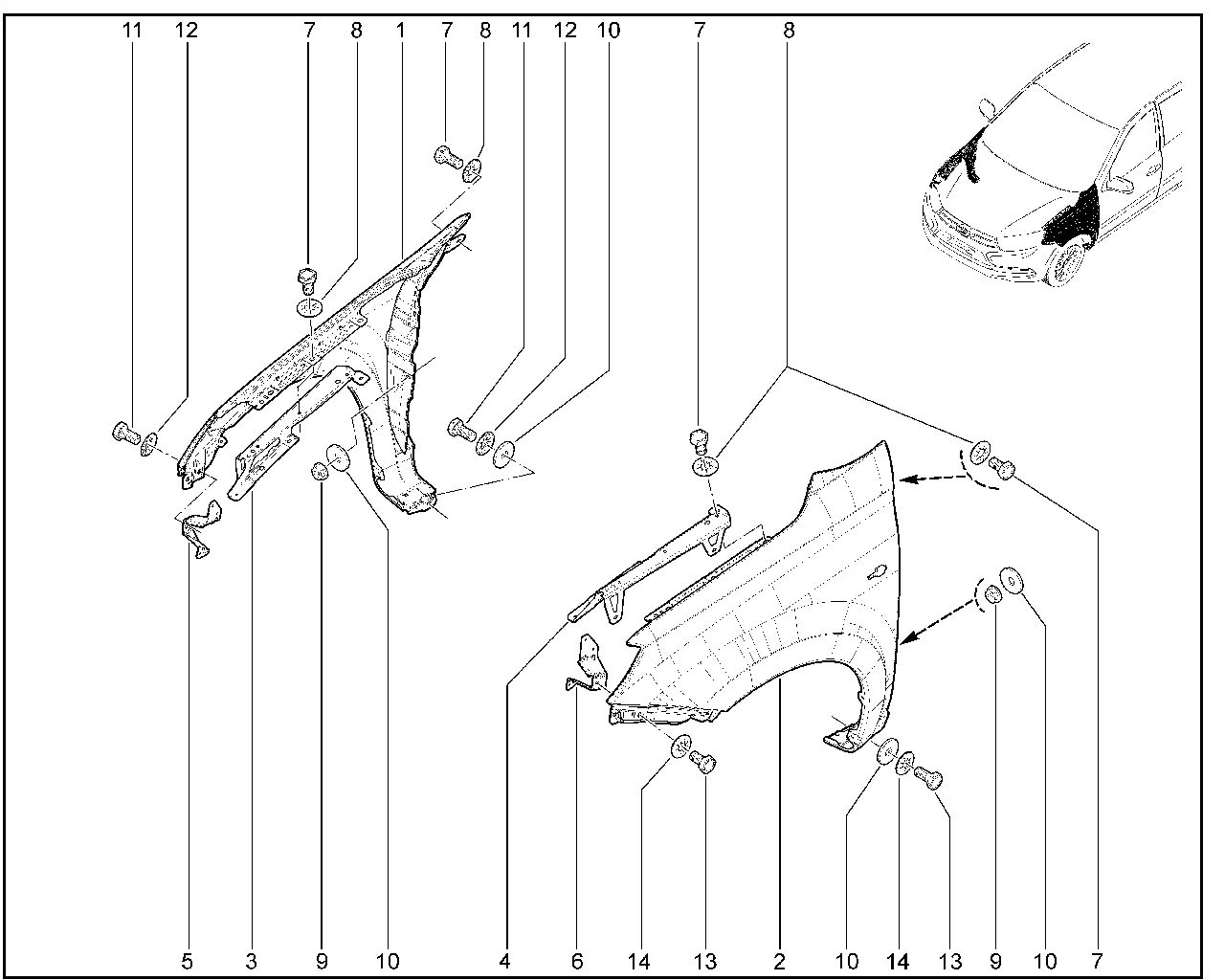 | 6 | Кронштейн крепления переднего крыла левый | 8450104281 | |
