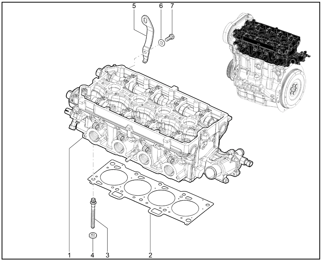 | 1 | Головка блока цилиндров с клапанами, толкателями и валами распределительными в сборе (без датчика температуры ОЖ) | 8460017024 | |
