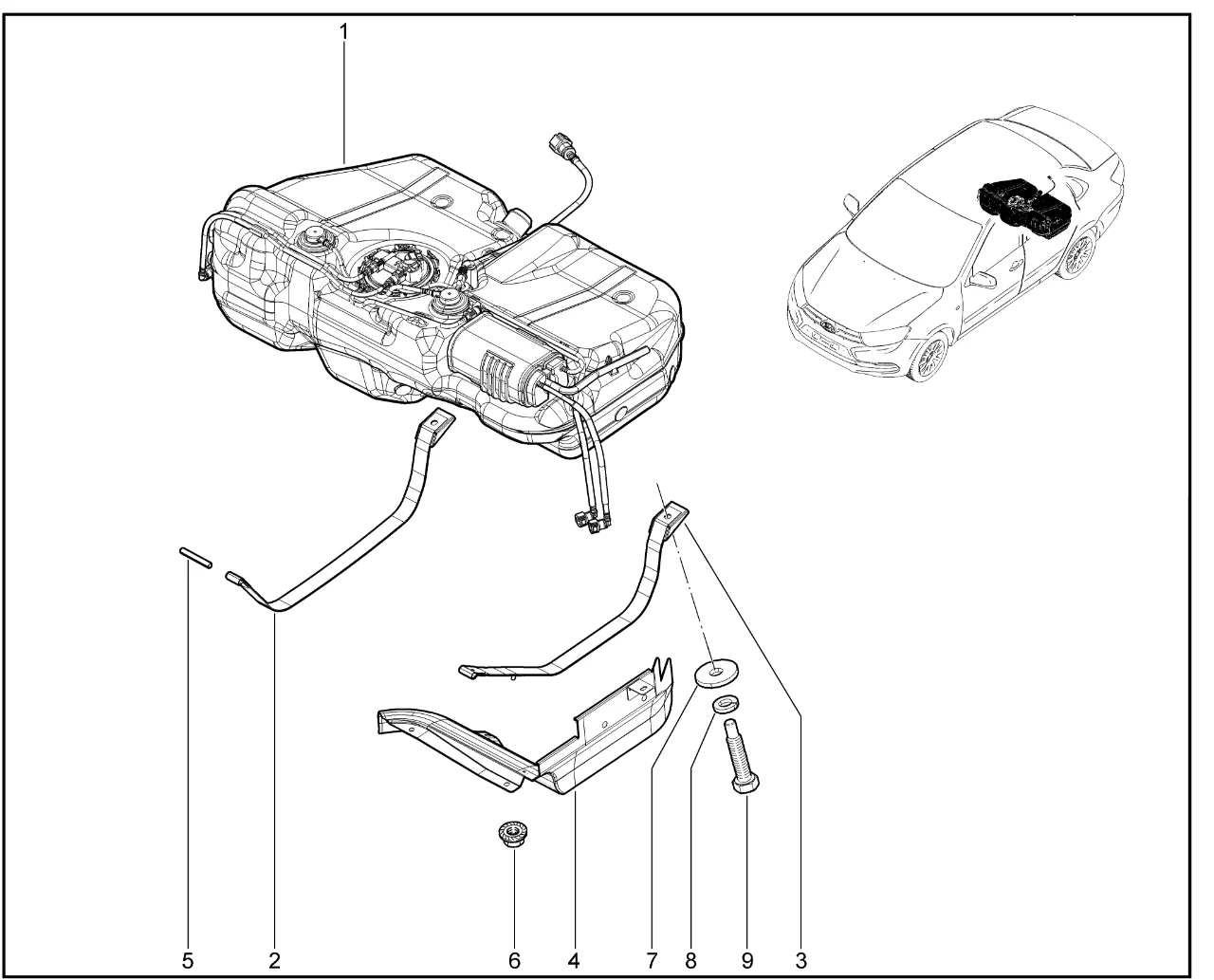 | 9 | Болт крепления хомута топливного бака | 21100110117600 | 8450001085 |