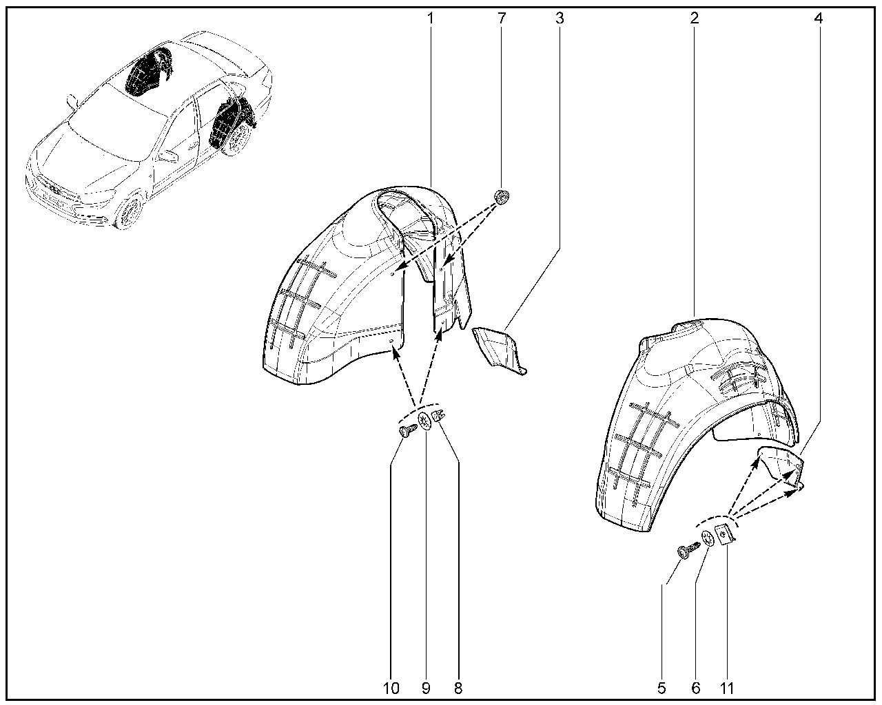 | 3 | Щиток заднего крыла нижний правый | 21900840406200 | 8450002402 |