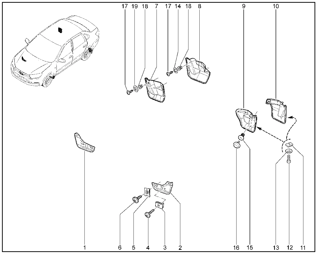 | 9 | Фартук заднего крыла левый | 21900840441300 | 8450001889 |