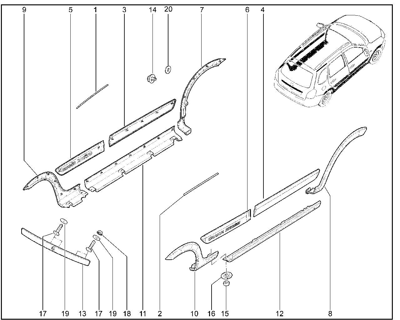 | 17 | Болт крепления накладки двери задка | 21030532524800 | 8450006092 |