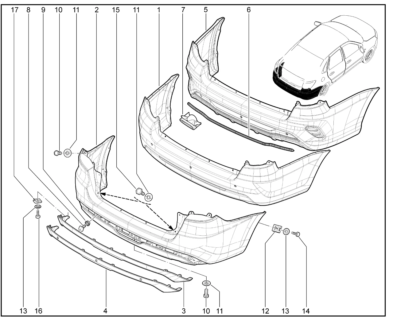 | 5 | Бампер задний (Drive Active)(лифтбек) | 8460013719 | |