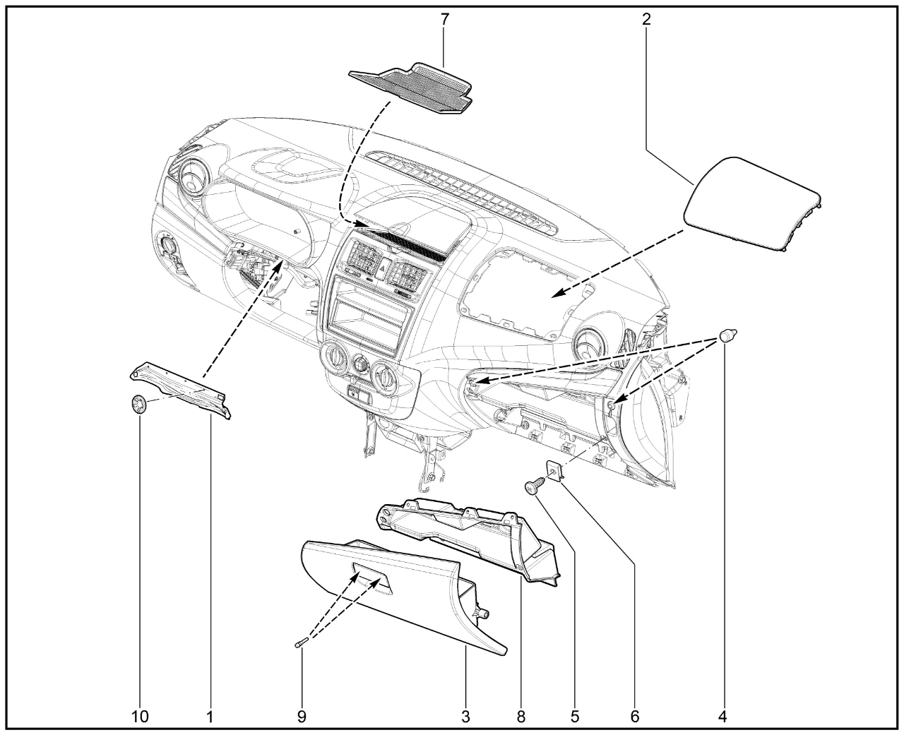 | 8 | Корпус вещевого ящика панели приборов с шумопоглощающей прокладкой в сборе | 8450110105 | |