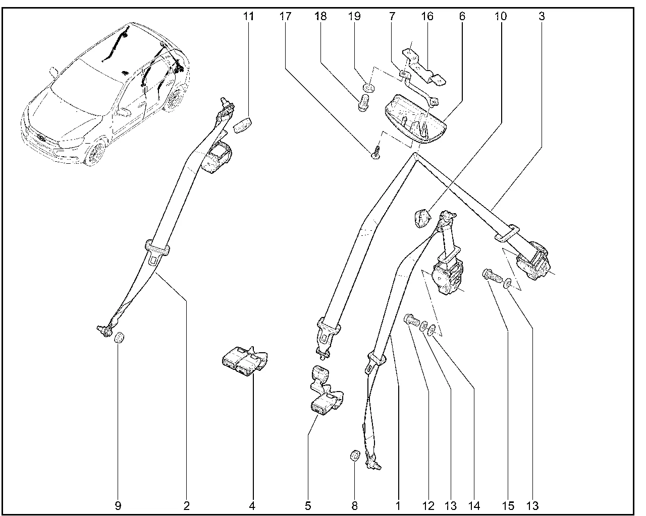 | 7 | Направляющая заднего среднего ремня безопасности | 21920821713600 | 8450061037 |