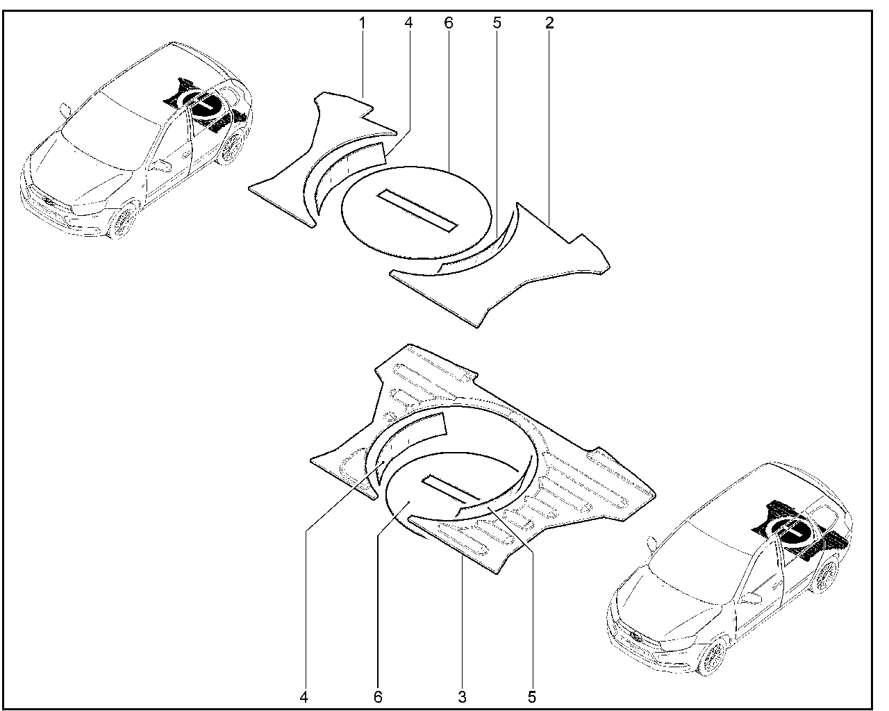 | 6 | Прокладка изоляционная в нишу запасного колеса | 849301563R |
