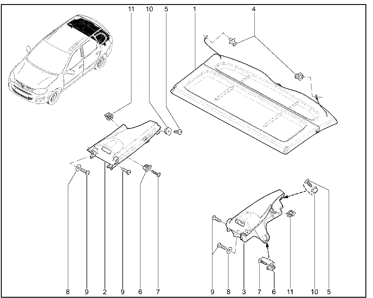 | 1 | Полка багажника со шнурами в сборе | 21940560701000 | 8450061128 |