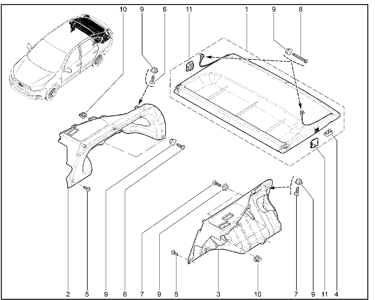 | 1 | Полка багажника со шнурами в сборе | 21910560701000 | 8450002250 |