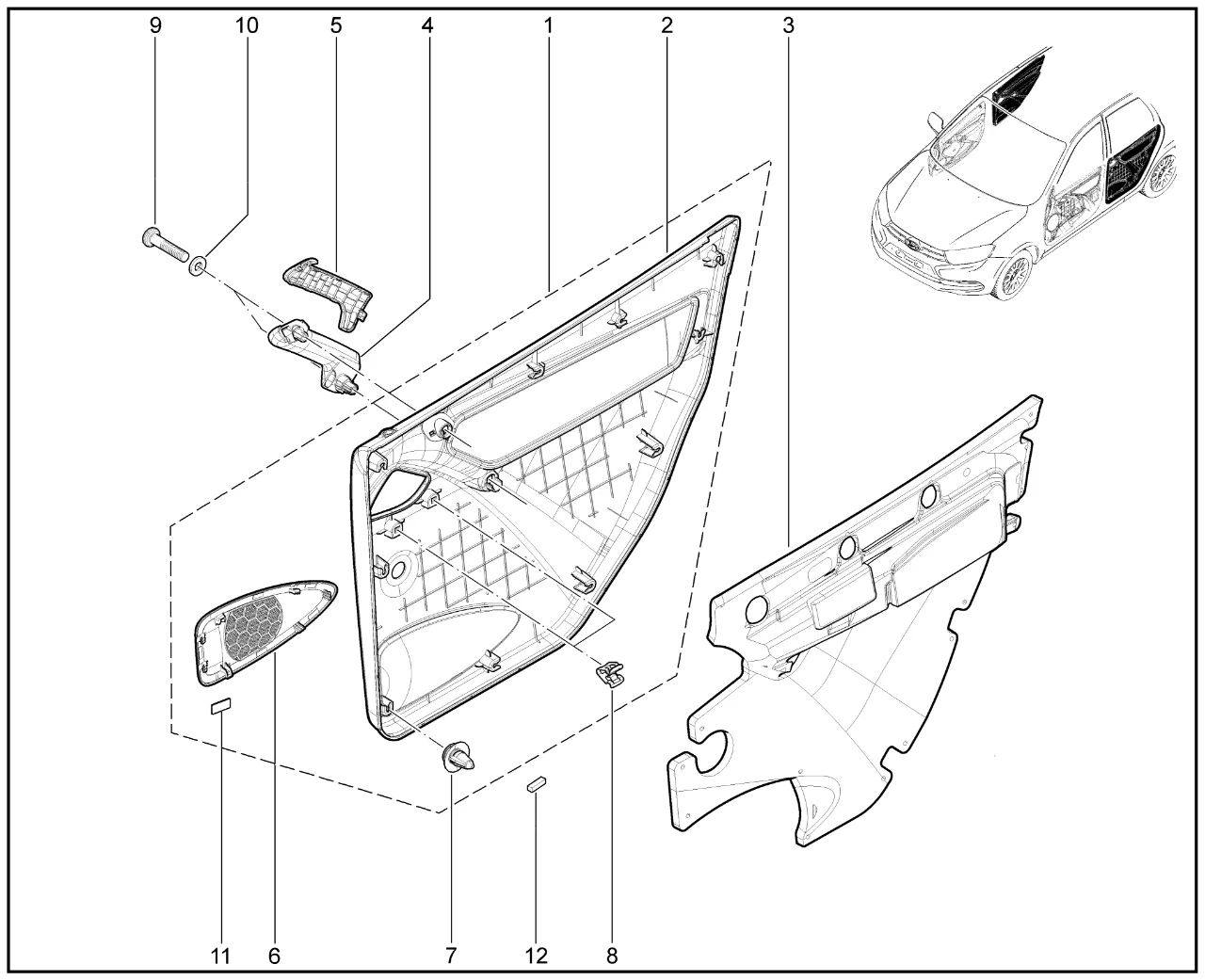 | 2 | Обивка задней двери левая (механический стеклоподъемник) | 8450104969 | |