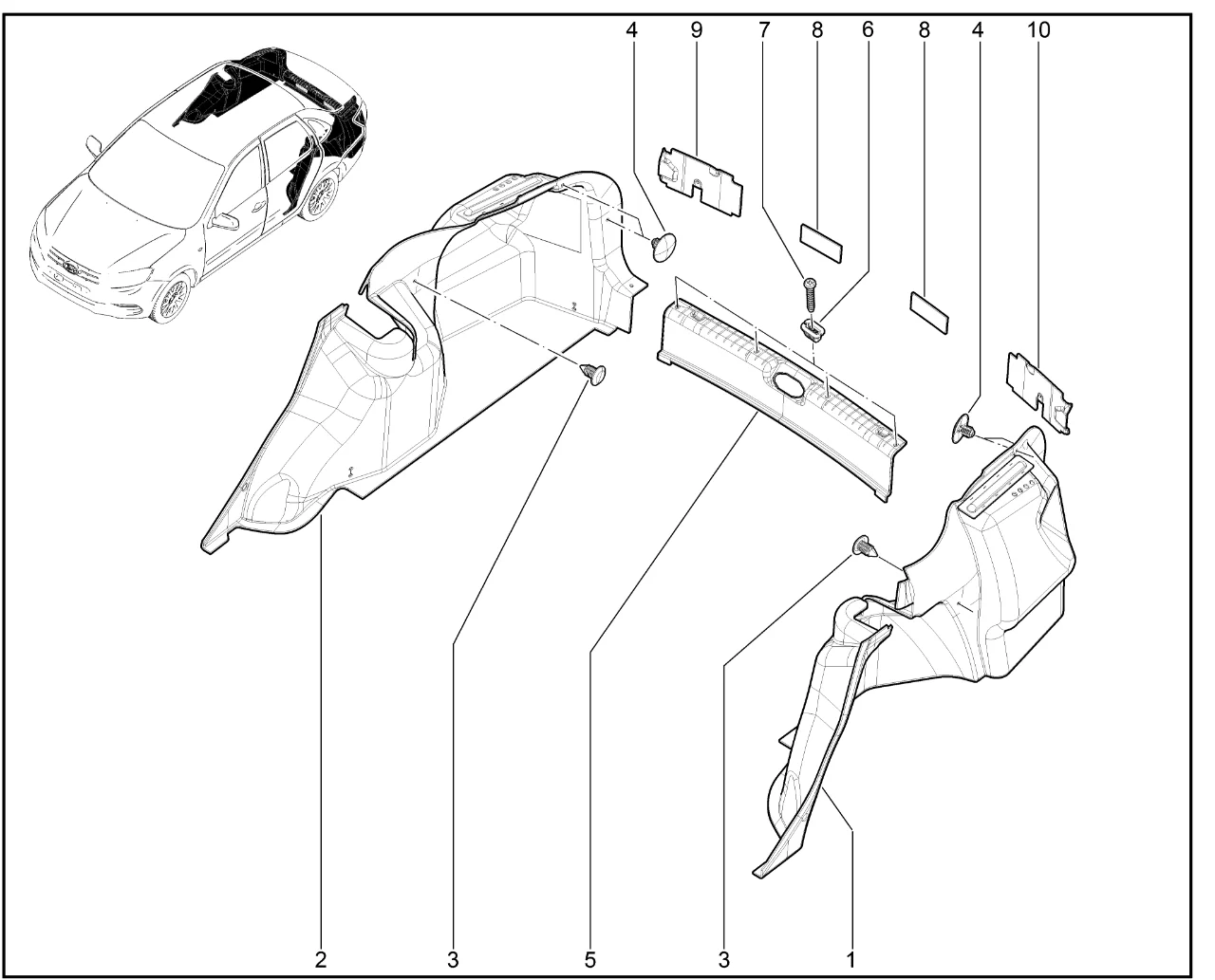 | 2 | Обивка арки боковины правая в сборе | 21900540219010 | 8450001698 |