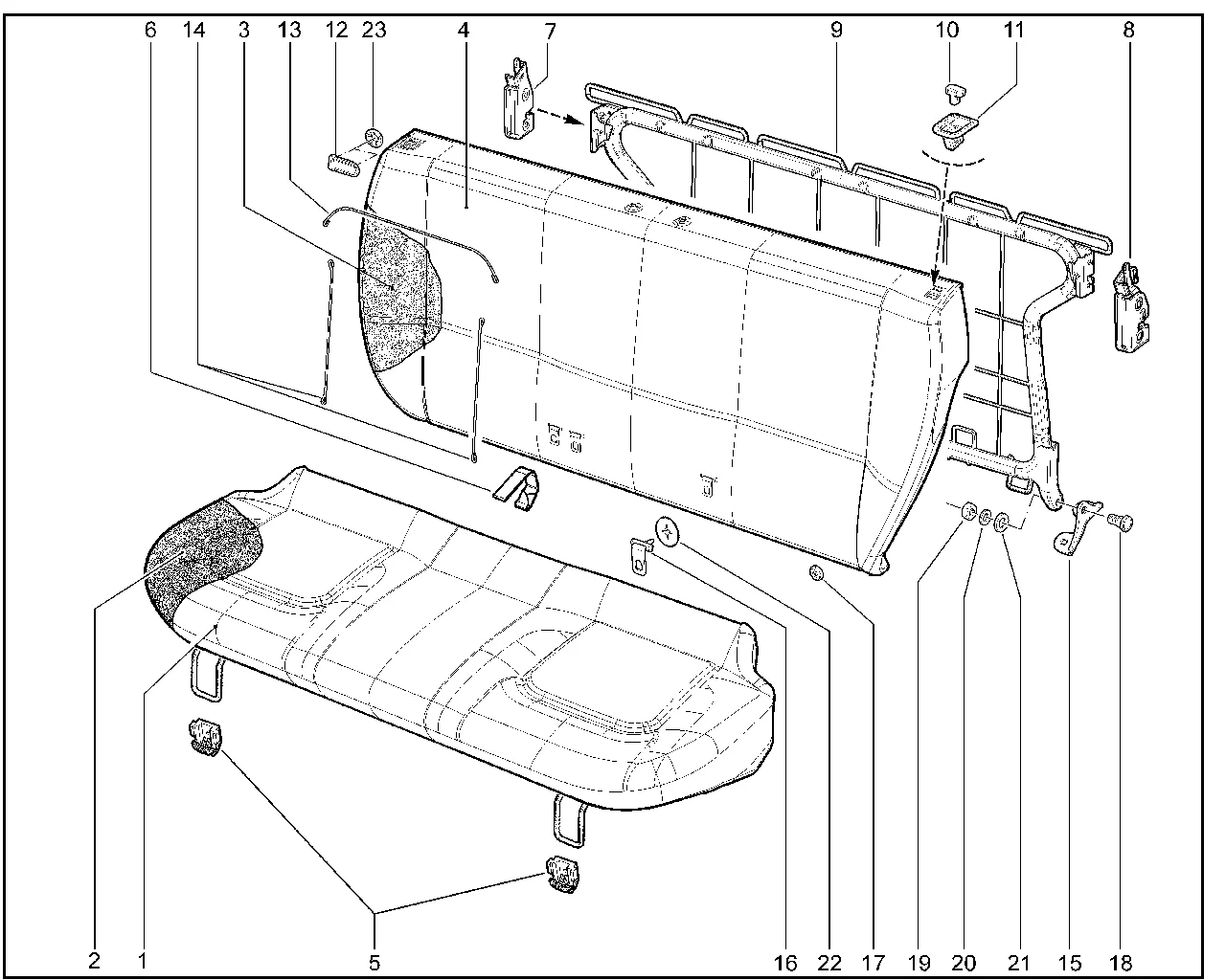 | 15 | Звено петли спинки заднего сиденья неподвижное левое | 8460013386 | |