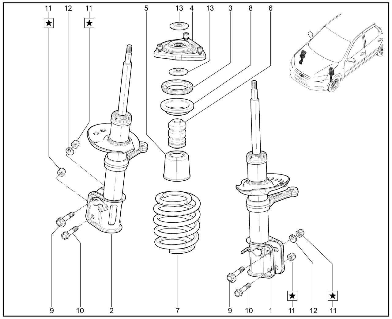 | 12 | Шайба болта крепления стойки передней подвески | 21080290105200 | 8450001186 |