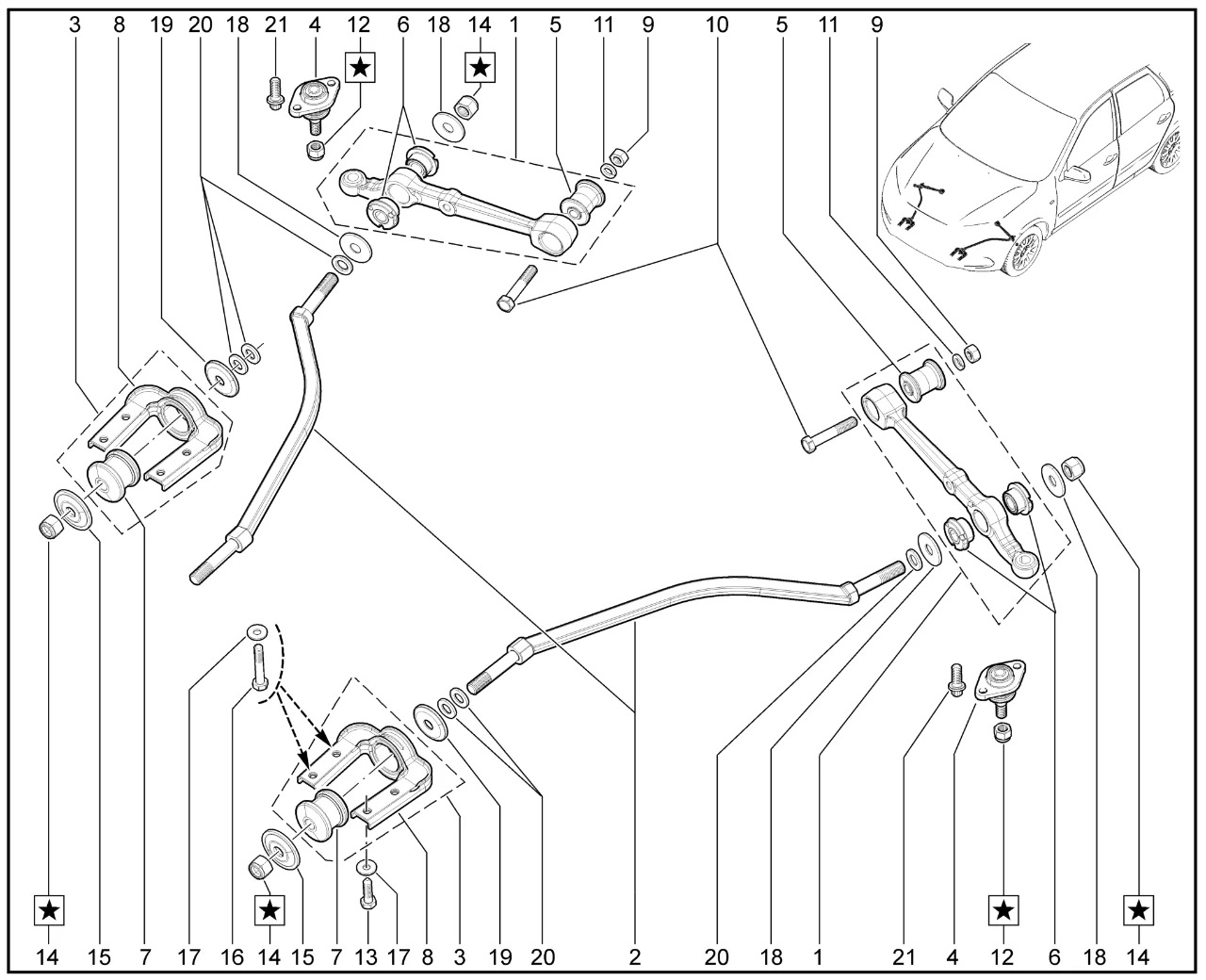 | 13 | Болт крепления кронштейна переднего шарнира растяжки передней подвески к кузову | 8450112218 | |