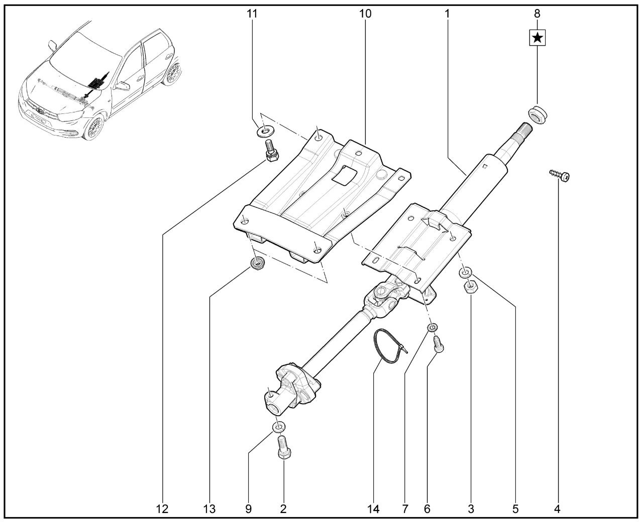| 1 | Вал рулевого управления с трубой, кронштейном и промежуточным валом в сборе | 11180340110000 | 8450002067 |