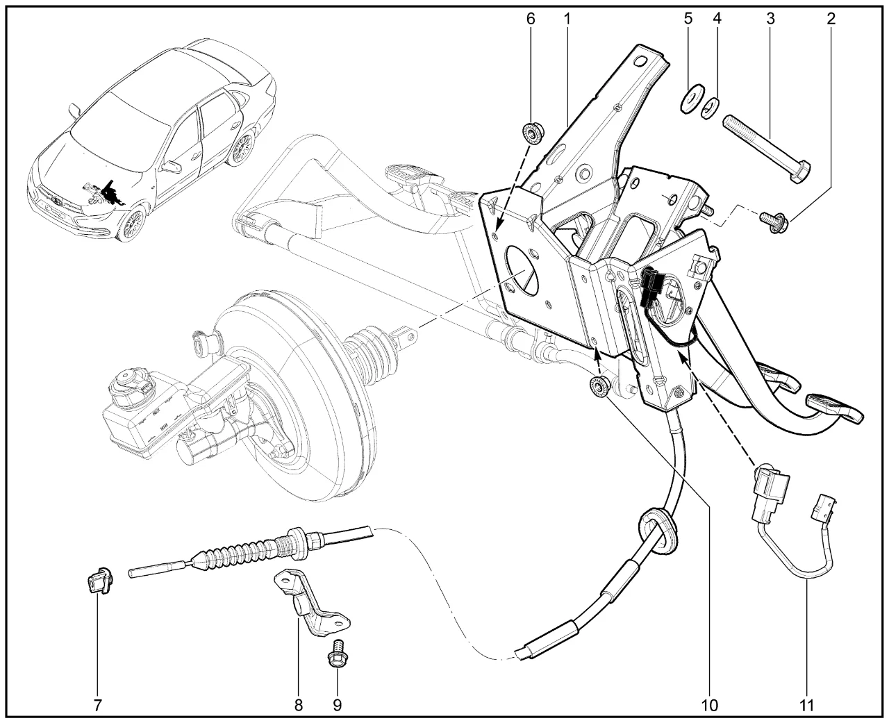 | 1 | Педали сцепления и тормоза с кронштейнами и тросом в сборе | 8450111639 | |