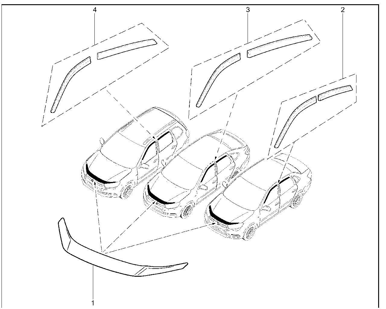 | 2 | Комплект дефлекторов дверей (седан, хэтчбэк) | 99999219007600 | 8450105726 |