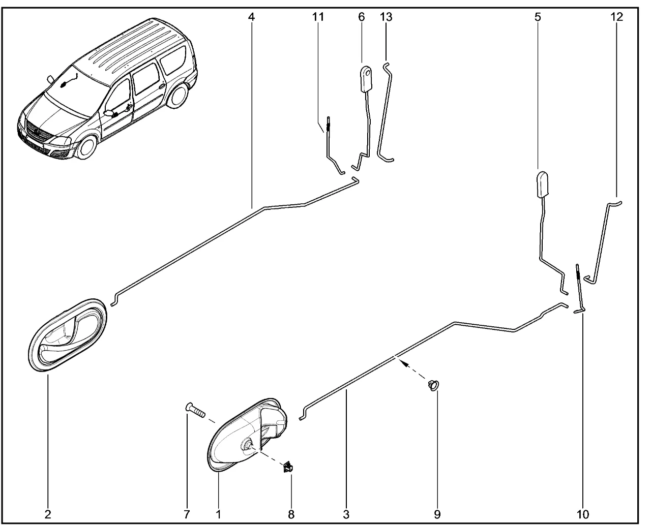 | 10 | Тяга наружной ручки передней двери левая | 8200497891 | |