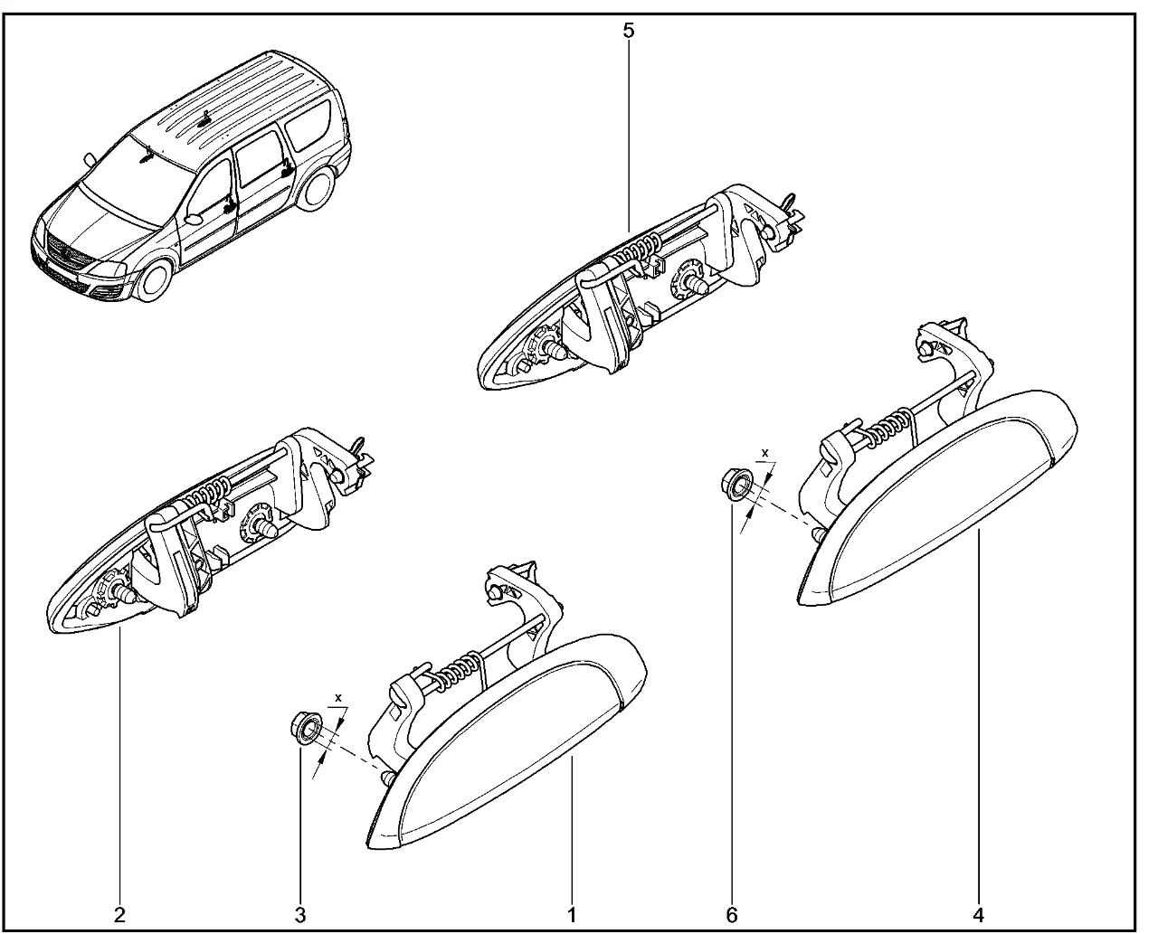 | 2 | Ручка двери наружная правая | 6001549492 | |