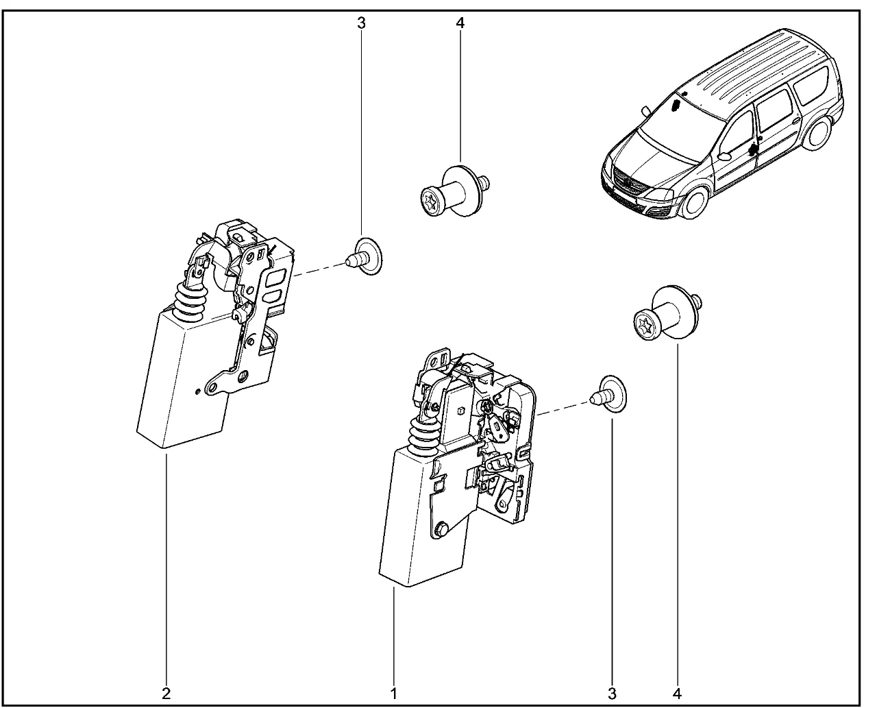 | 2 | Замок электрический двери правой передней | 805024577R | |