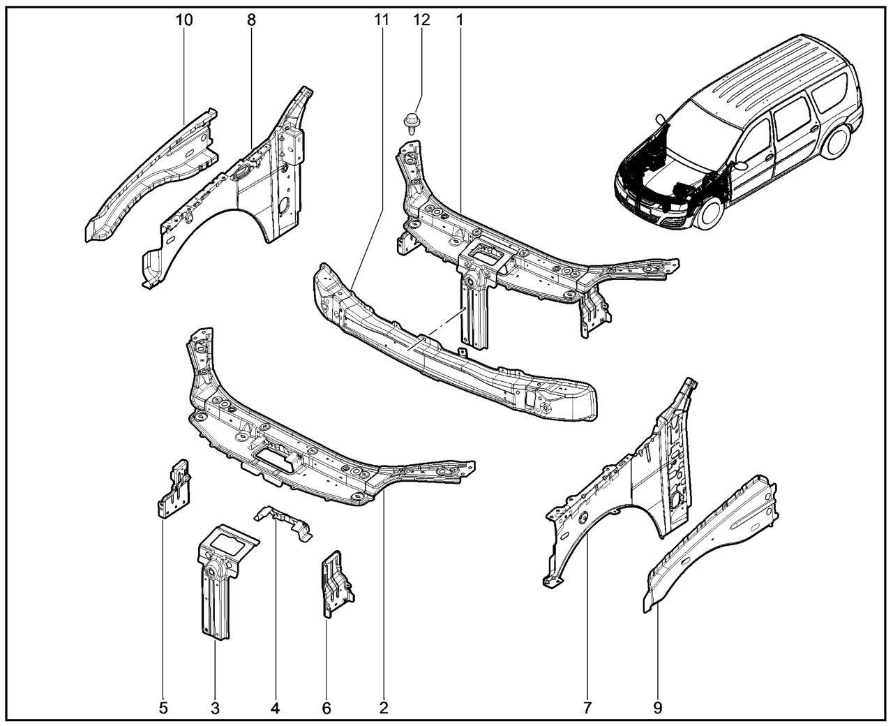 | 9 | Усилитель панели брызговика левый | 6001549860 | |