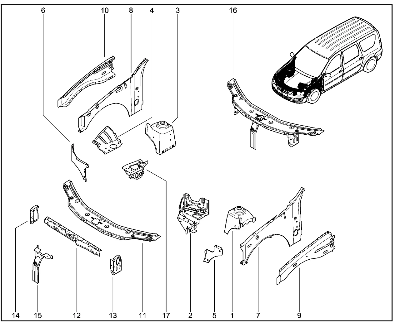 | 8 | ПАНЕЛЬ БРЫЗГОВИКА ПРАВАЯ | 6001549856 | |
