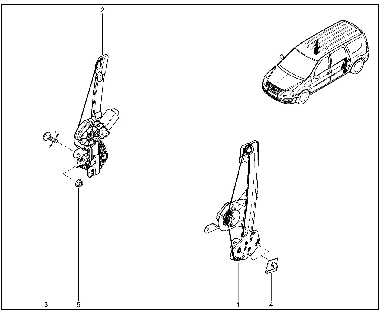 | 2 | Электростеклоподъемник задней двери правый | 827207186R | |