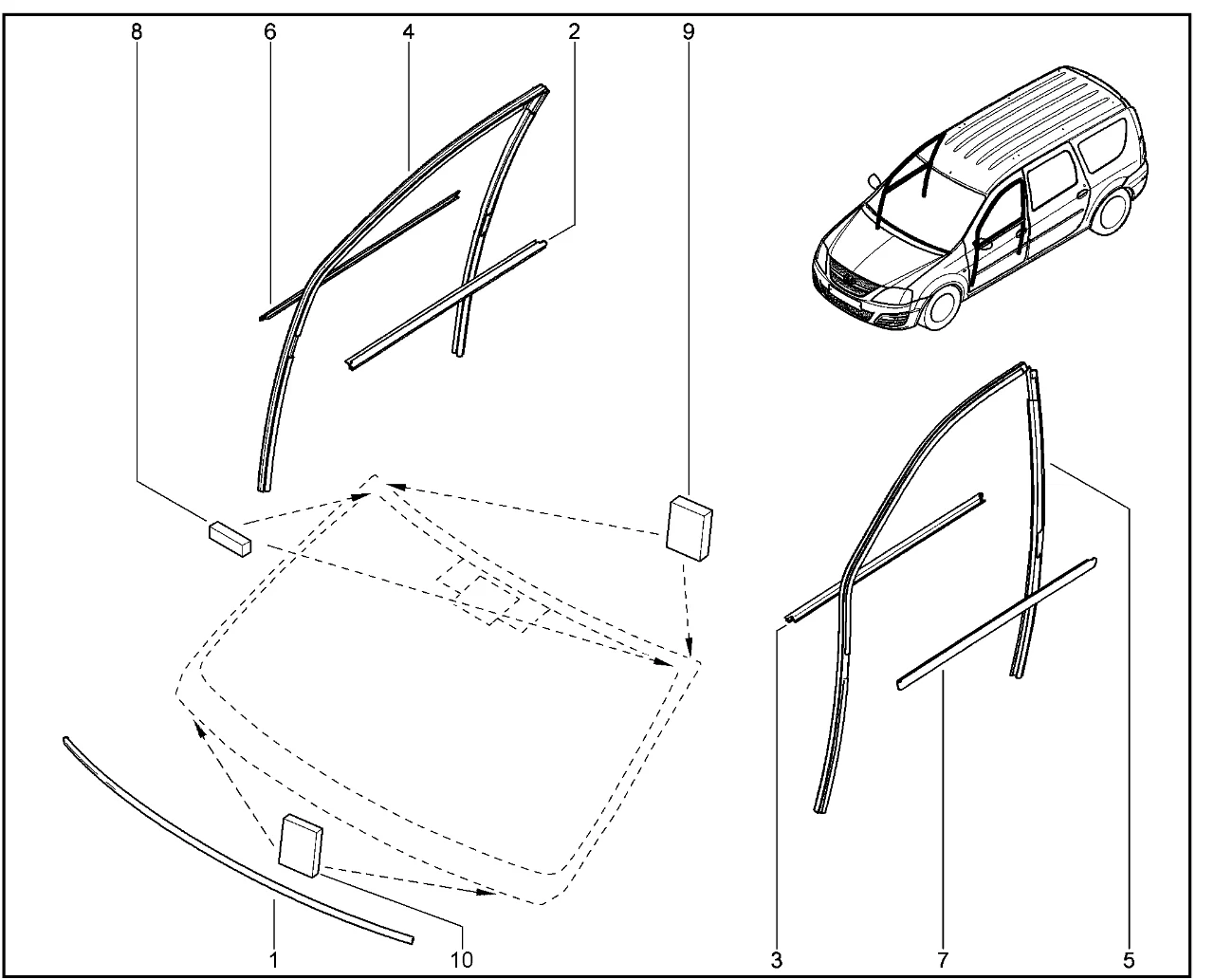 | 1 | Окантовка ветрового стекла нижняя | 6001547001 | |