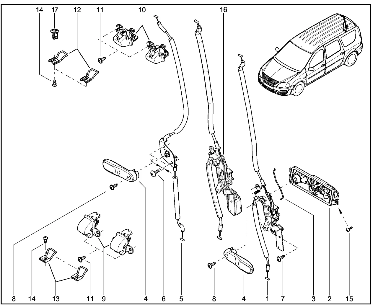 | 4 | Рукоятка привода замков двери зад. | 8200095967 | |
