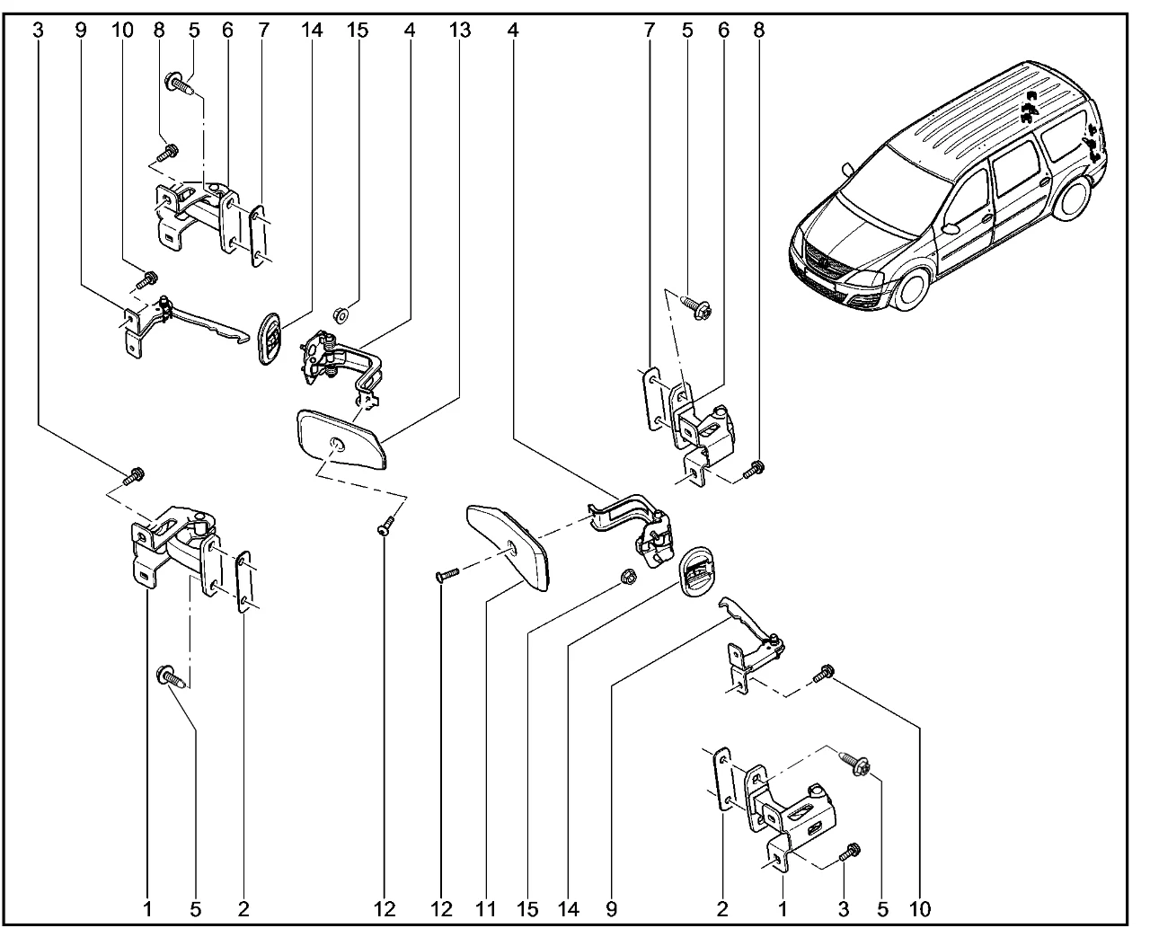 | 1 | Петля задних распашных дверей нижняя | 6001548848 | |