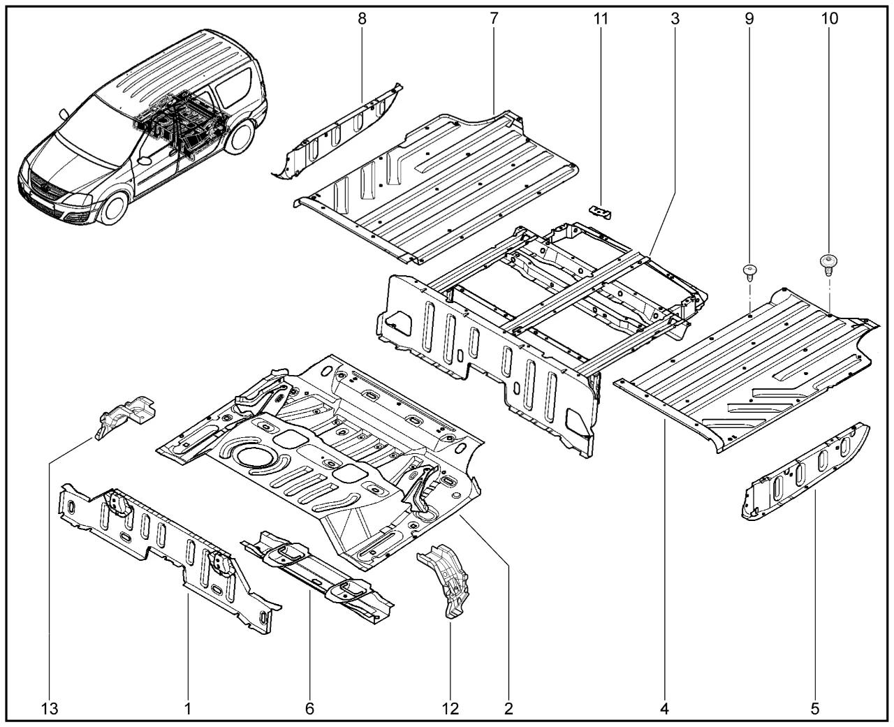 | 7 | Панель заднего пола передняя правая | 6001548795 | |