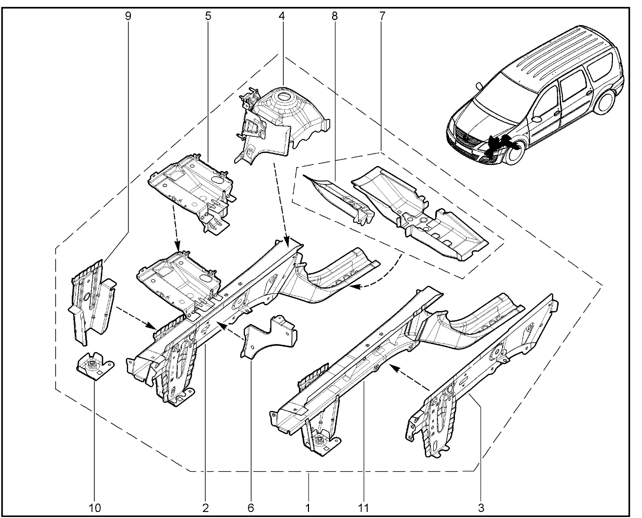 | 11 | Лонжерон передний левый в сборе | 8460006783 |