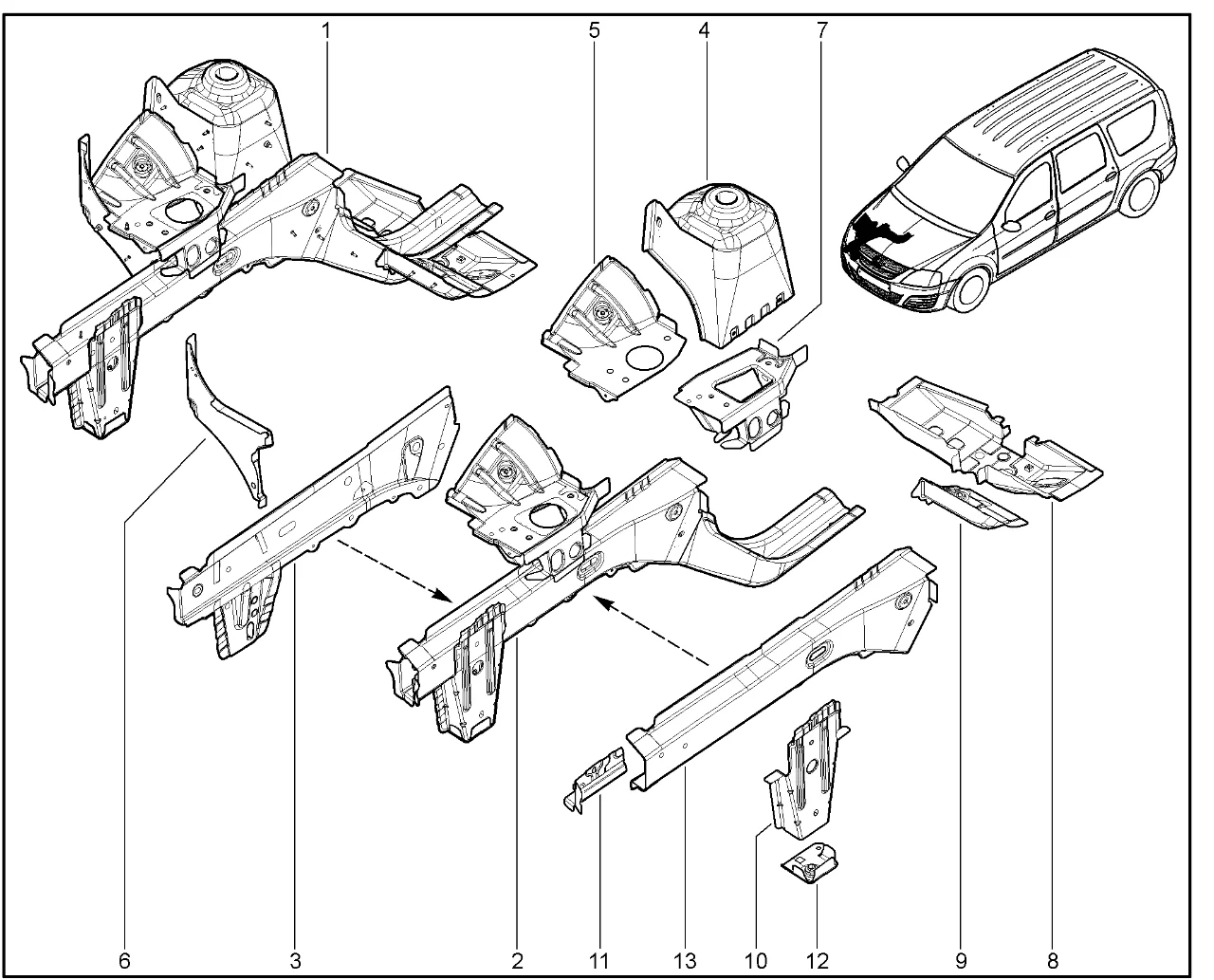 | 13 | Лонжерон передний правый | 8460006784 | |